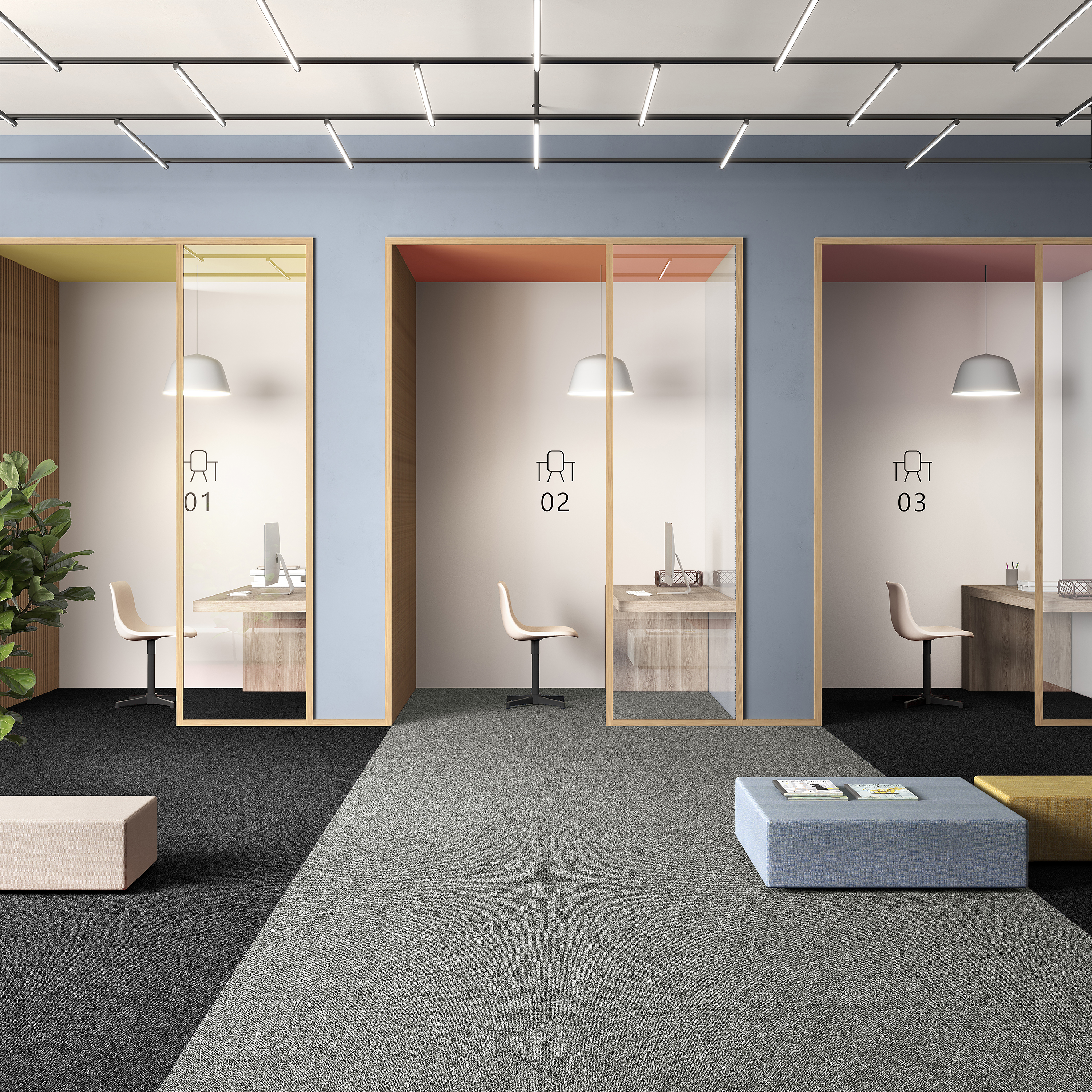 Модульное напольное покрытие для коммерческих помещений с высокой проходимостью. Устойчива к воздействию ножек мебели и колесиков кресел в течение длительного времени.